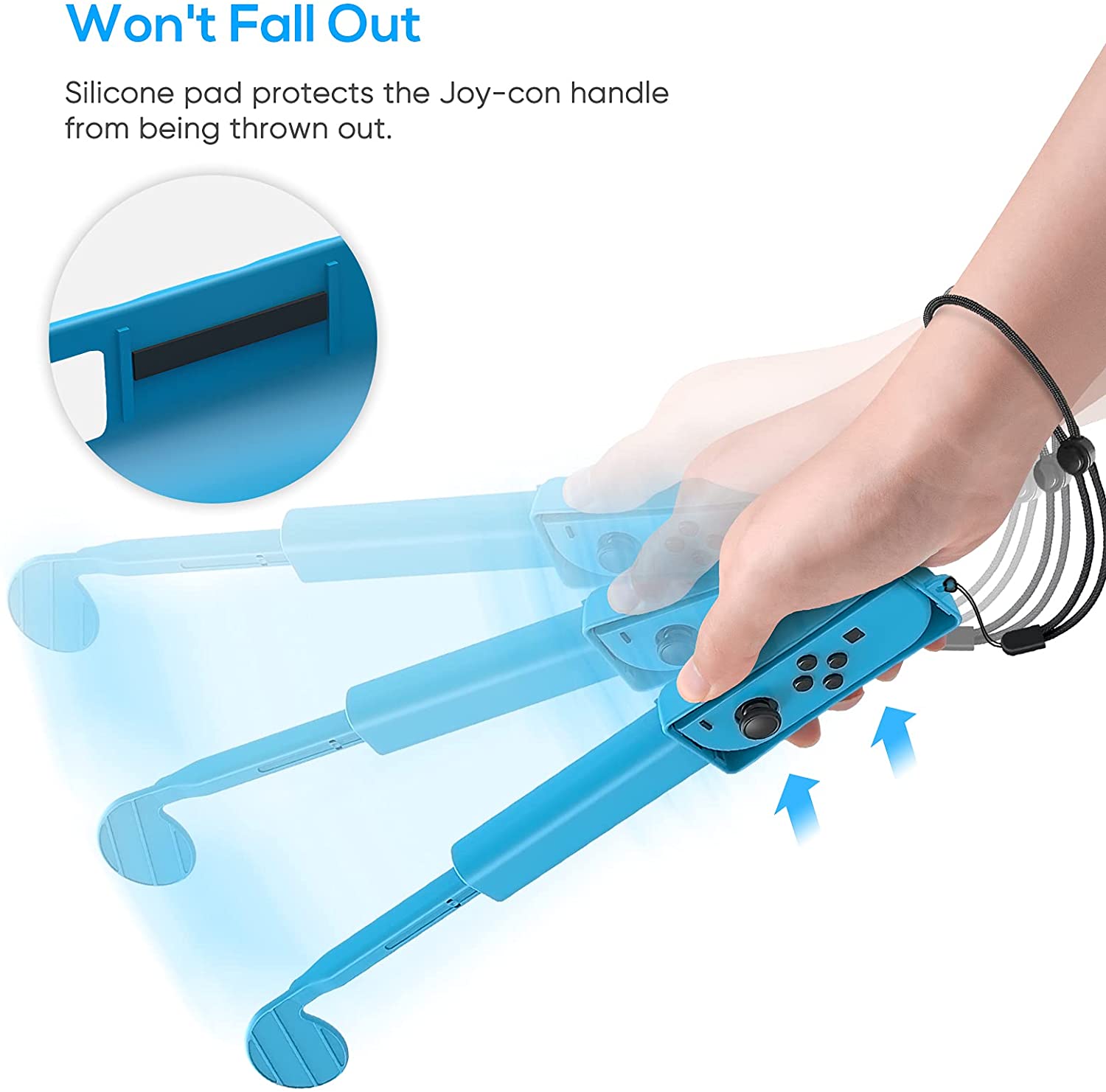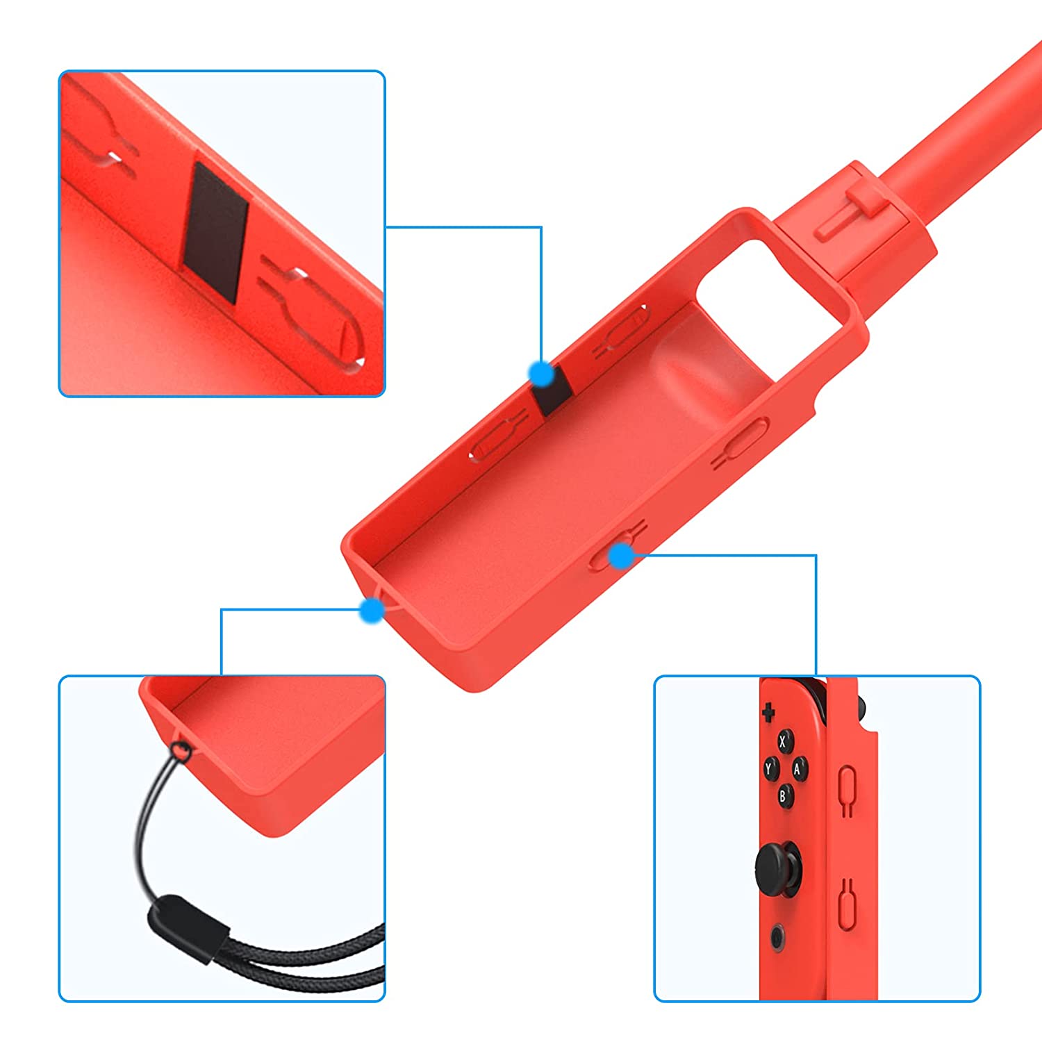 Eenvoudig te installeren en te verwijderen: Duw je Joy-Cons voorzichtig in de groef. De groef is precies op maat voor de Joy-Cons en de handvat zal niet gemakkelijk vallen. Het product bevat een polsband om de veiligheid te garanderen wanneer u ondergedompeld bent in uw games.