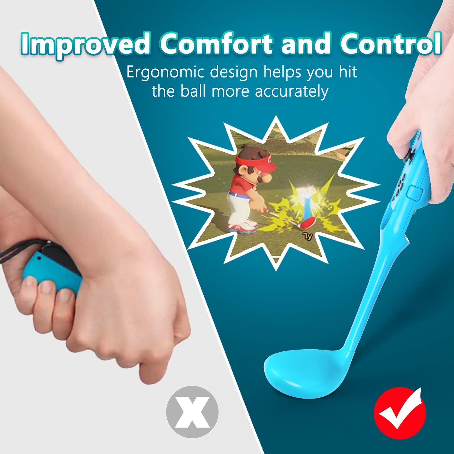Geschikt voor de in 2021 Uitgebrachte Switch Game: Golfclubs speciaal ontworpen en geschikt voor Mario Golf: Super Rush - Switch. Past perfect bij de Joy-Cons, zonder enige signaalvertraging wanneer je de games speelt, zodat je een meer waarheidsgetrouwe spelervaring hebt bij het spelen van je favoriete golfspel.