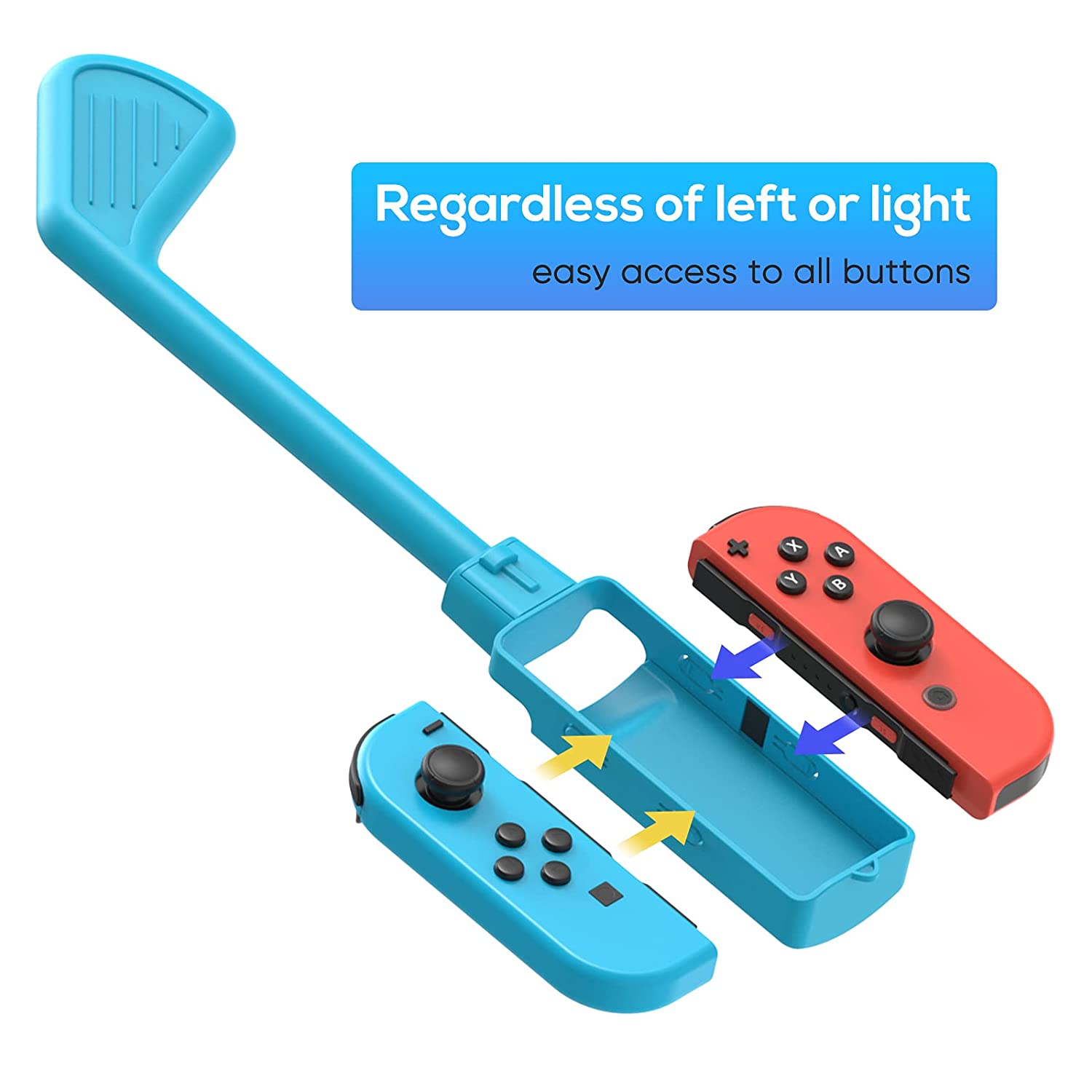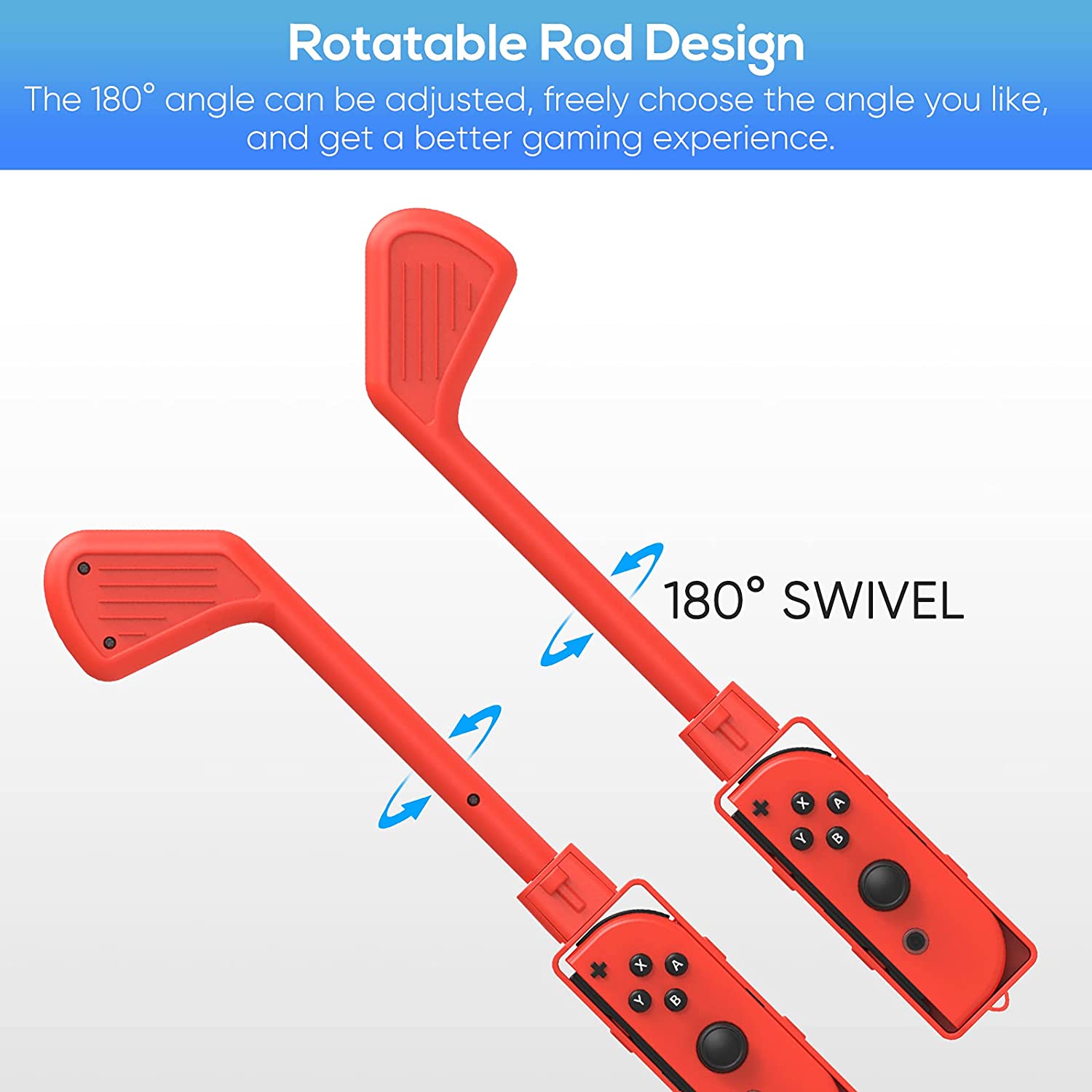 Betere spelervaring: Golfclub is geschikt met alle Joy-Cons. Installeer de Joy-Cons en alle knoppen zullen op één lijn liggen met de golfclub en correct werken. Ergonomisch ontwerp en volledige bescherming met hoogwaardige materialen. Wanneer je speelt en hard gooit, zal de golfclub langer worden en je een betere spelervaring bieden.
